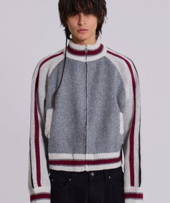Jaded London Men’s Grey Team 85 Knitted Bomber Jacket | Multi