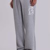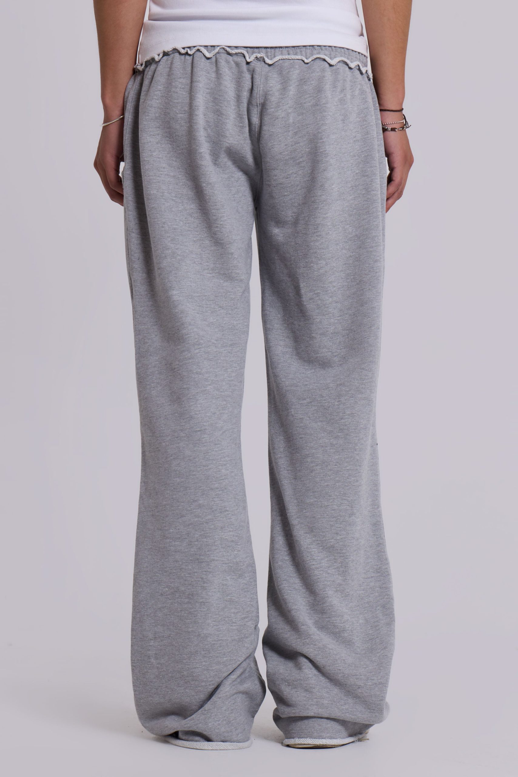 Grey marl low-rise slouchy bootcut joggers in loopback sweat with branded detail.