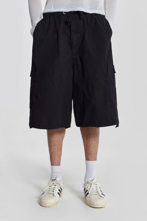 Discover the unparalleled comfort and style of the Black Parachute Cargo Baggy Shorts. These shorts feature an oversized fit and six-pocket styling, accompanied by an elasticated waistband and adjustable cotton drawcord for added flexibility.