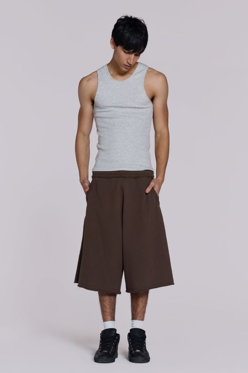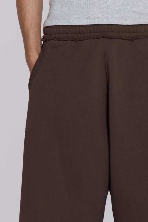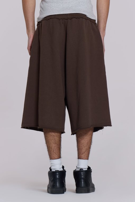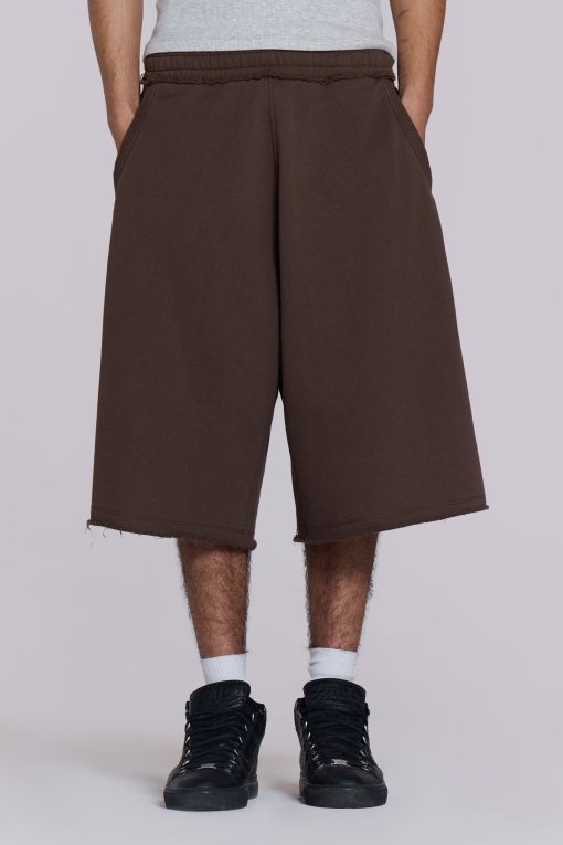 The Chocolate Brown Monster Jogger Shorts are crafted from a fleece-back heavy sweat fabric boasting a super oversized fit, finished with raw-edge waistband details. These joggers are elevated with a length that falls just below the knee.