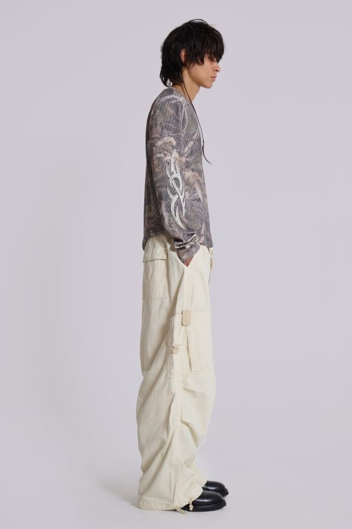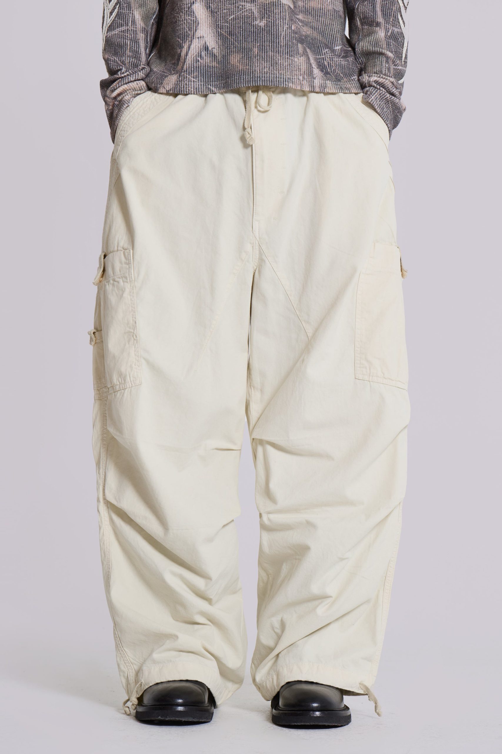 Jaded London Men’s Ecru Parachute Cargo Pants | White