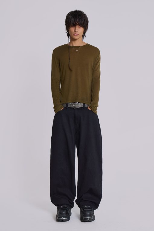 Discover the Khaki Mist Long Sleeve Top. Crafted from a sheer fabric, this top features a slightly cropped body enhanced with a twisted side seam and central back seam detail.