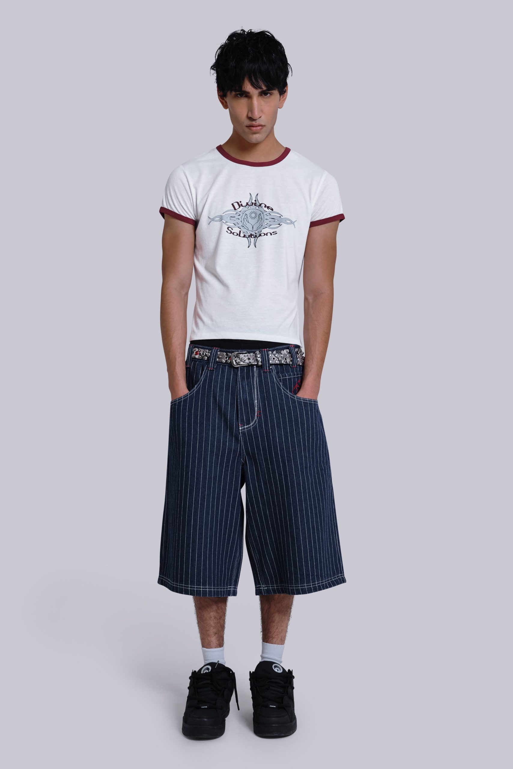 Jaded London Men’s Ollie Pinstripe Jorts | Blue