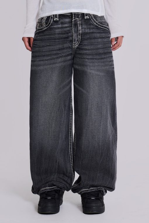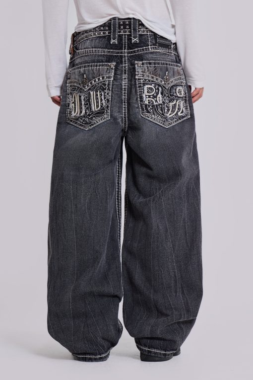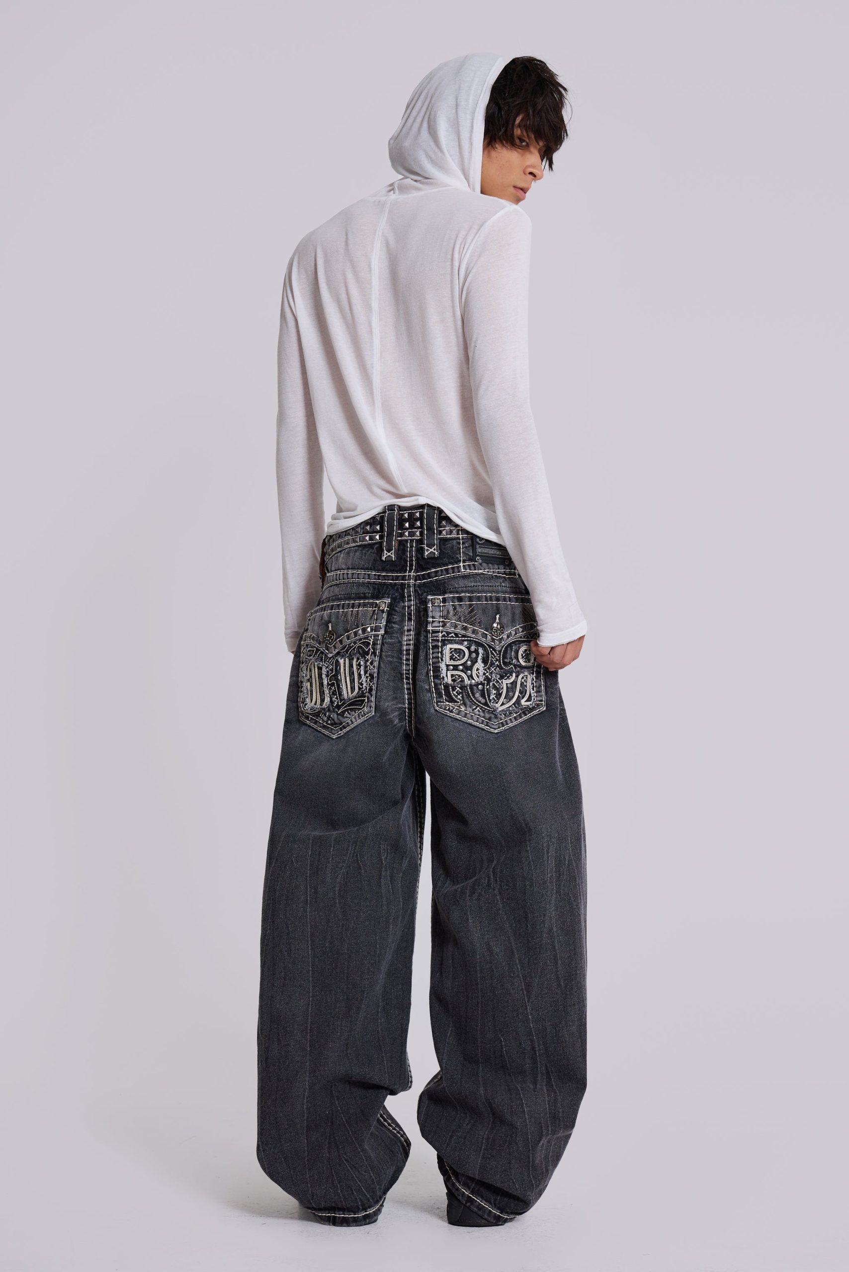 Jaded London Men’s Rock Revival Axel Colossus Jeans In Washed Black | Black