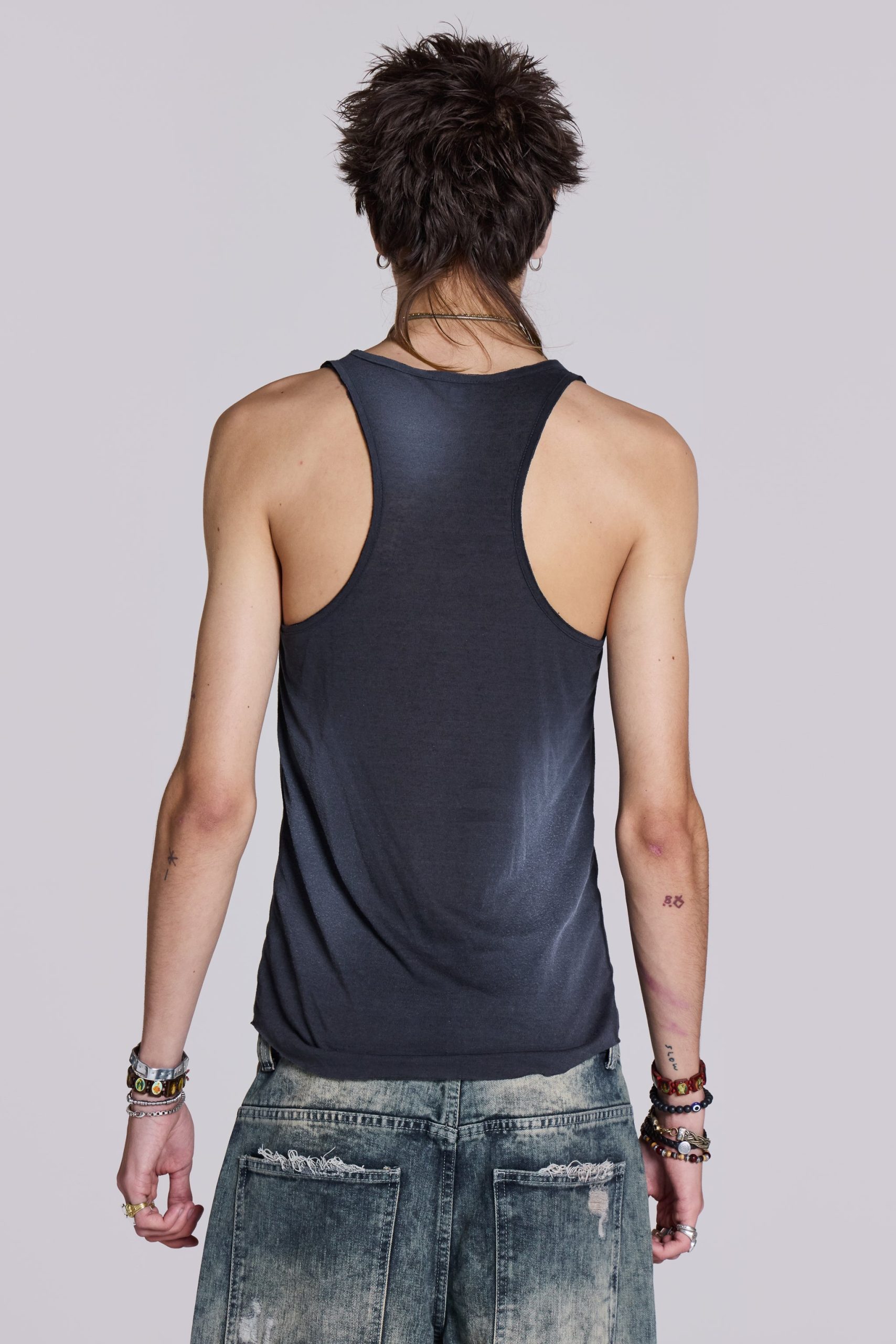 Jaded London Men’s Safety Pin Washed Black Tank | Grey