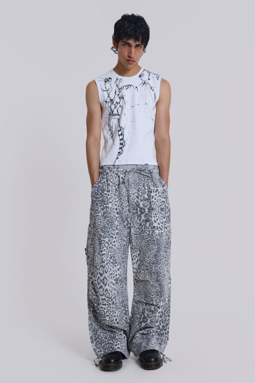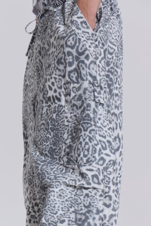 Designed with an oversized fit and a combination of metal eyelets, zip fly and adjustable cotton drawcord, our Snow Leopard Parachute Cargo Pants deliver refined luxury and ultimate comfort. Details such as a pleated knee and inside leg darts ensure a perfect fit, while a six-pocket styling and a unique airpod pocket provide functional convenience. Elevate any look with this timeless and classic silhouette.