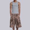 The Woodland Camo Monster Jogger Shorts are crafted from a fleece-back heavy sweat fabric boasting a super oversized fit, finished with raw-edge waistband details. These joggers are elevated with a length that falls just below the knee.