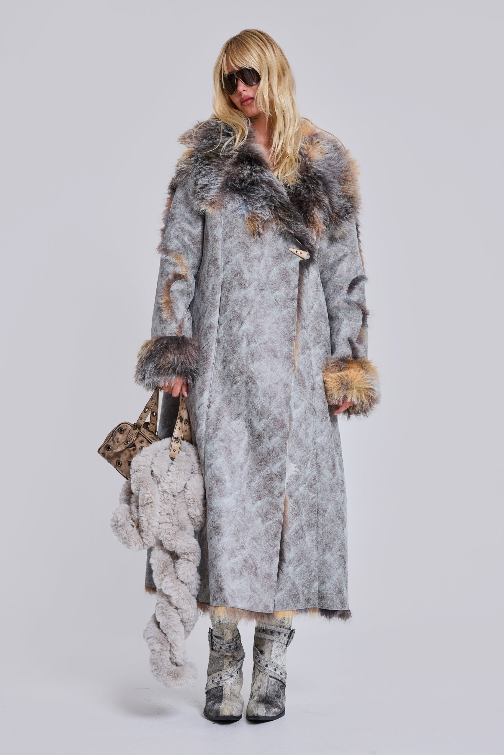 - Lined with multi colour faux fur