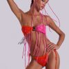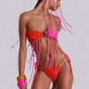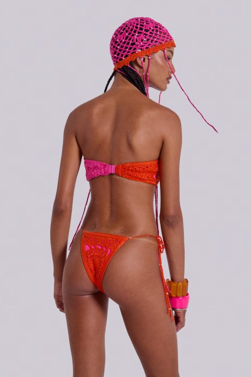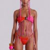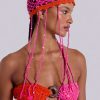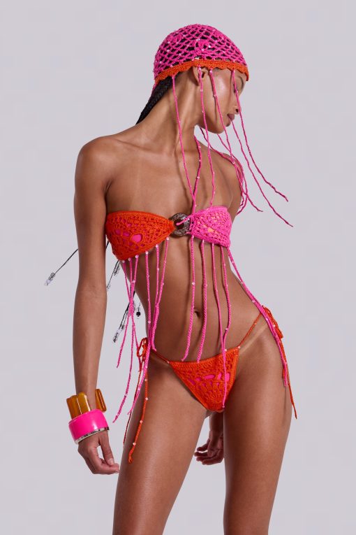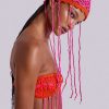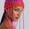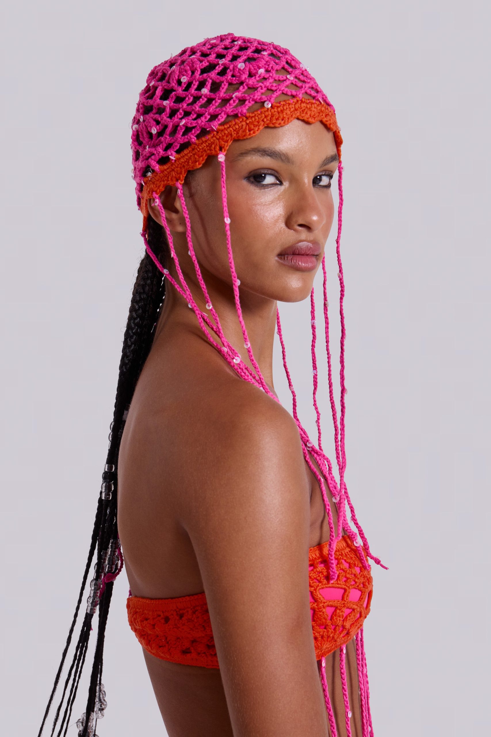 Hand crochet skull cap hat with crochet fringe detail and decorative sequins.