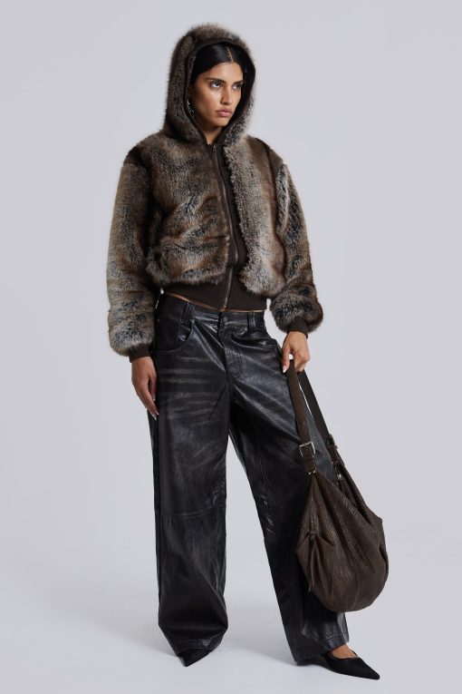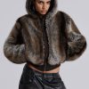 Jaded London Women’s Bear Faux Fur Hooded Jacket | Brown