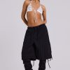 - Elasticated waistband with adjustable cotton drawcord through metal eyelets