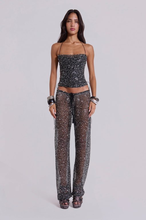 DescriptionDeva Sequin Knit Trousers in Midnight