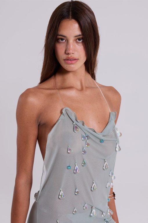 Due to the nature of this fabric and delicate trims, extra care should be taken when wearing/washing to prevent snagging . Hand wash only.