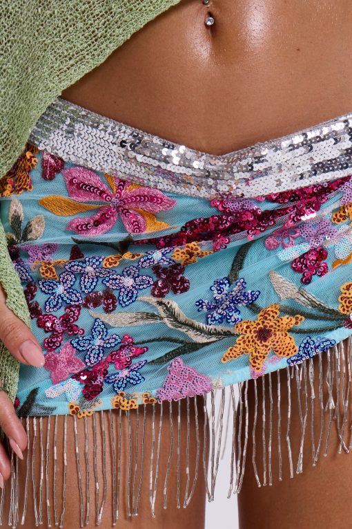 Sequin Embellished Wrap Mini Skirt with Sequin Waistband
