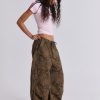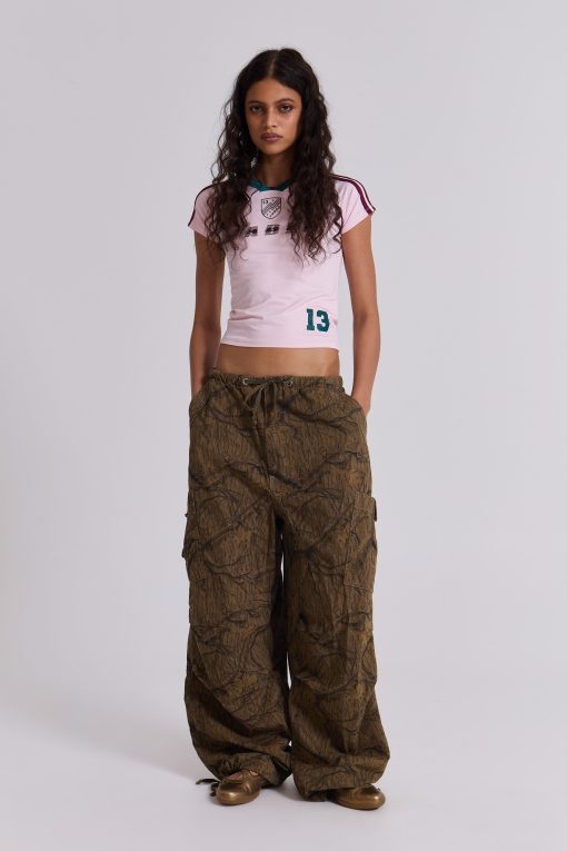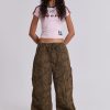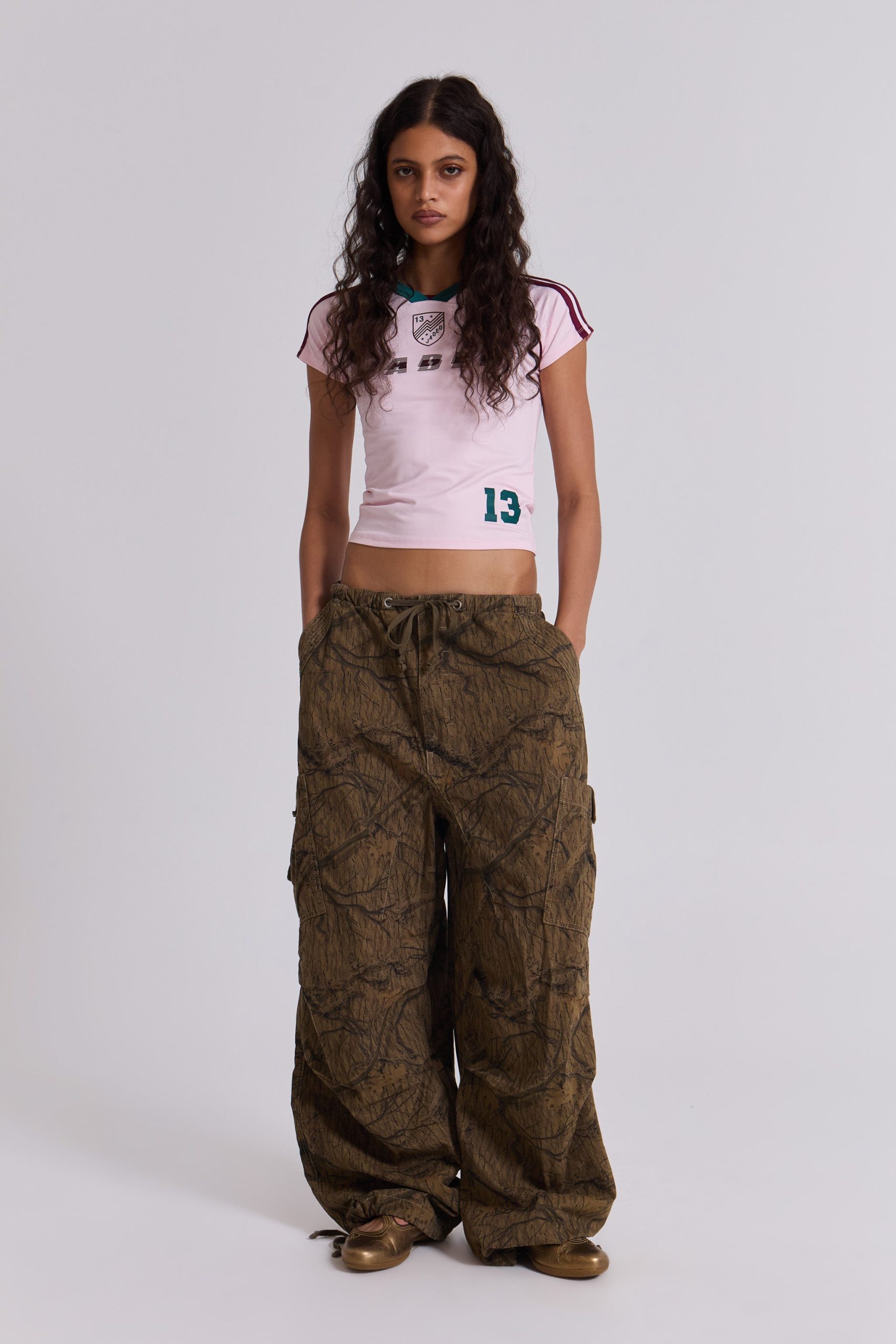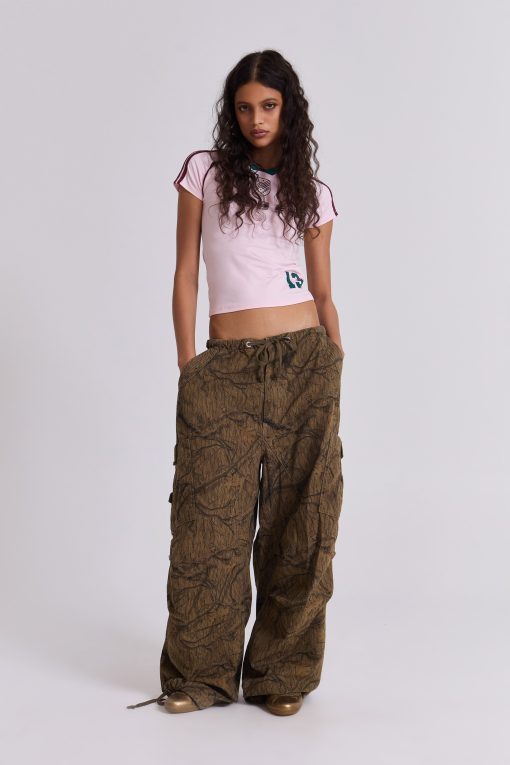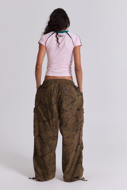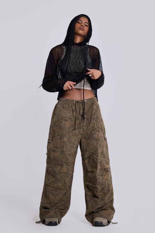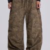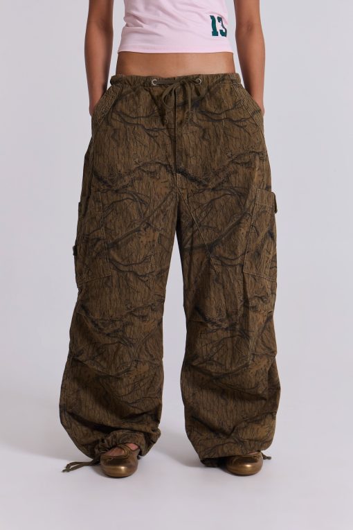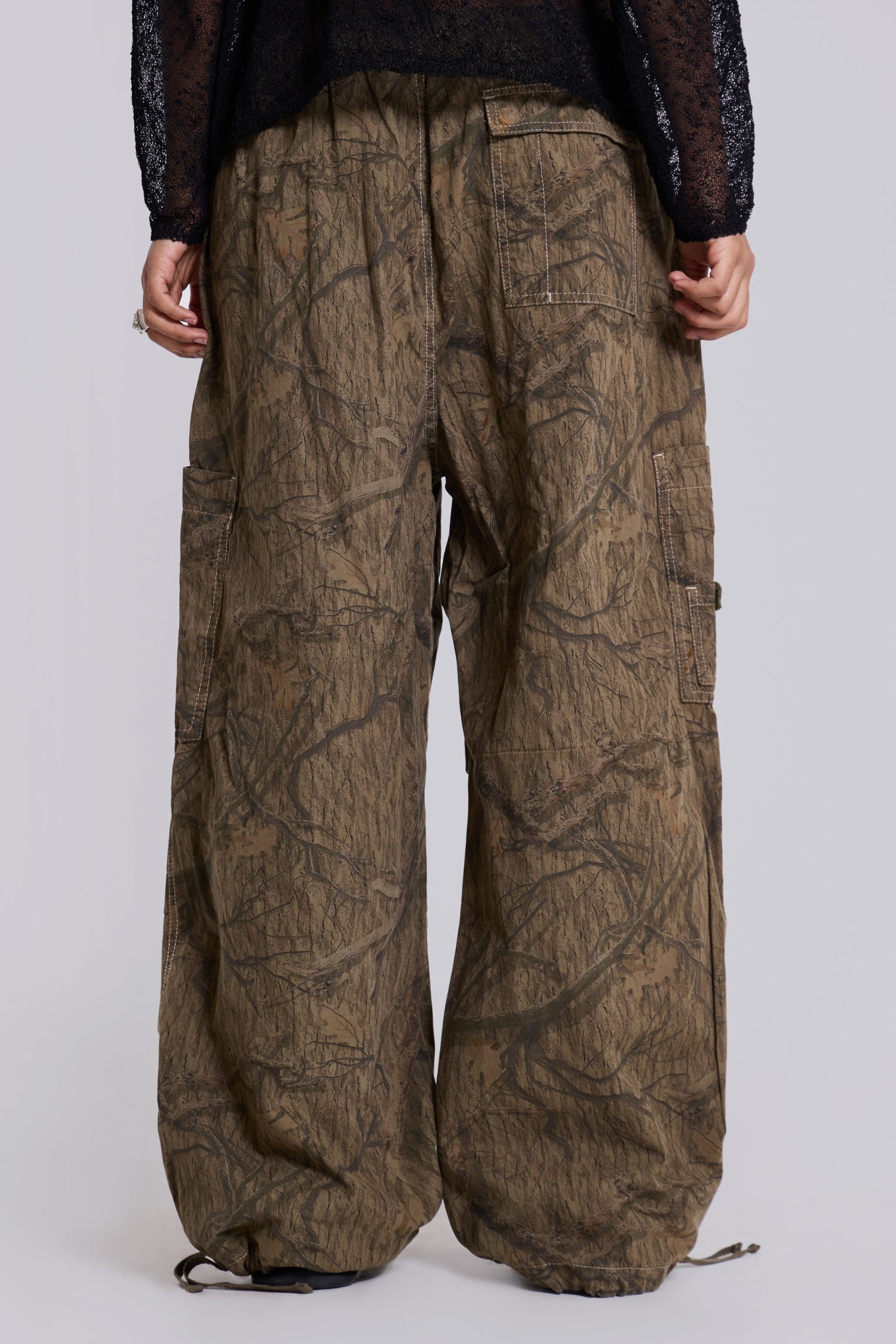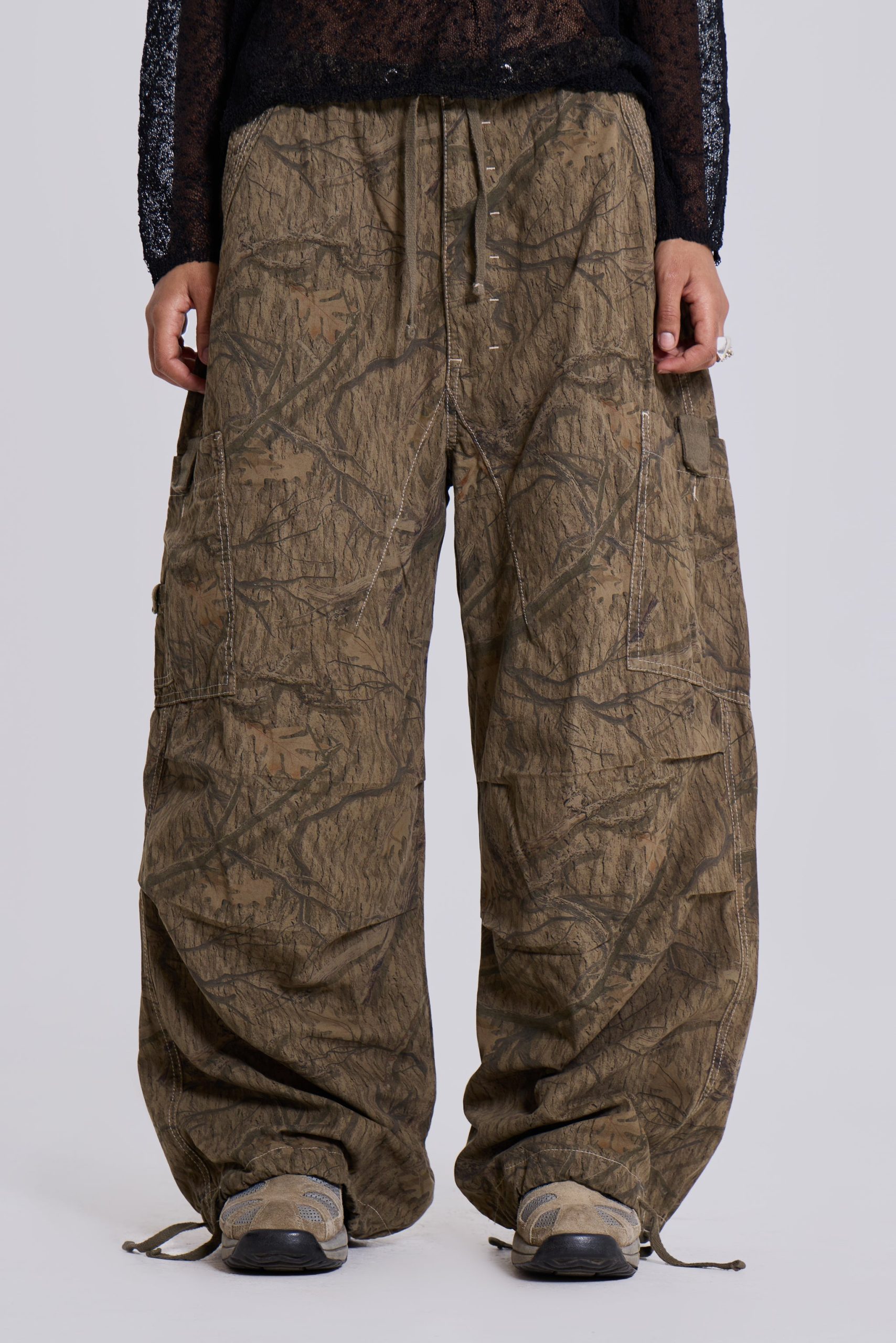 DescriptionDesigned with an oversized fit and a combination of metal eyelets, zip fly and adjustable cotton drawcord, our Forest Camo Parachute Cargo Pants deliver refined luxury and ultimate comfort. Details such as a pleated knee and inside leg darts ensure a perfect fit, while a six-pocket styling and a unique airpod pocket provide functional convenience. Elevate any look with this timeless and classic silhouette.
