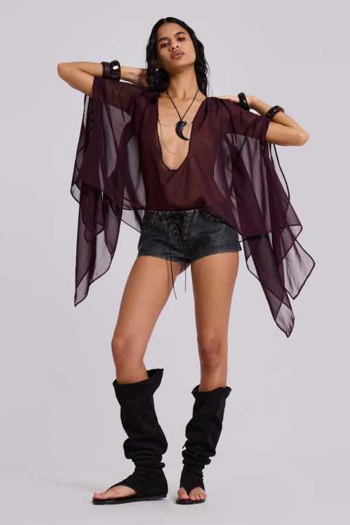 Jaded London Women’s Kaiane Chiffon Cape Top | Purple