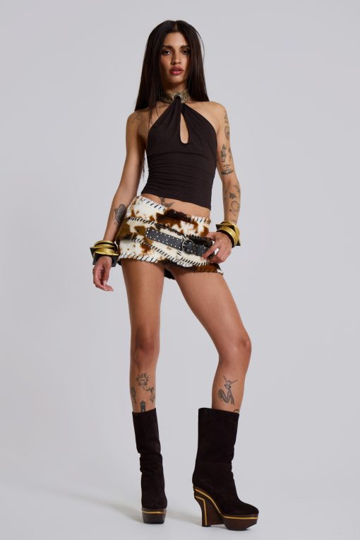 - Decorative faux leather cord whipstitch detail on top and bottom edges