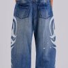 Model is 5 ft 9, size 8 and wears a size W30 for an oversized fit.