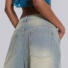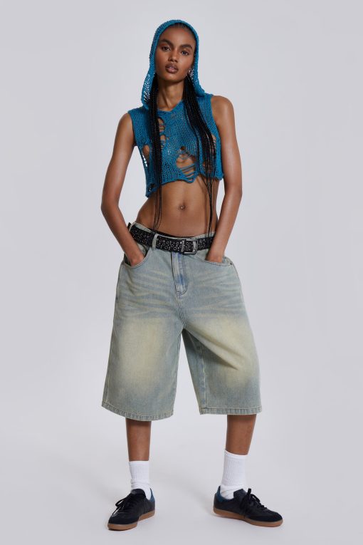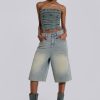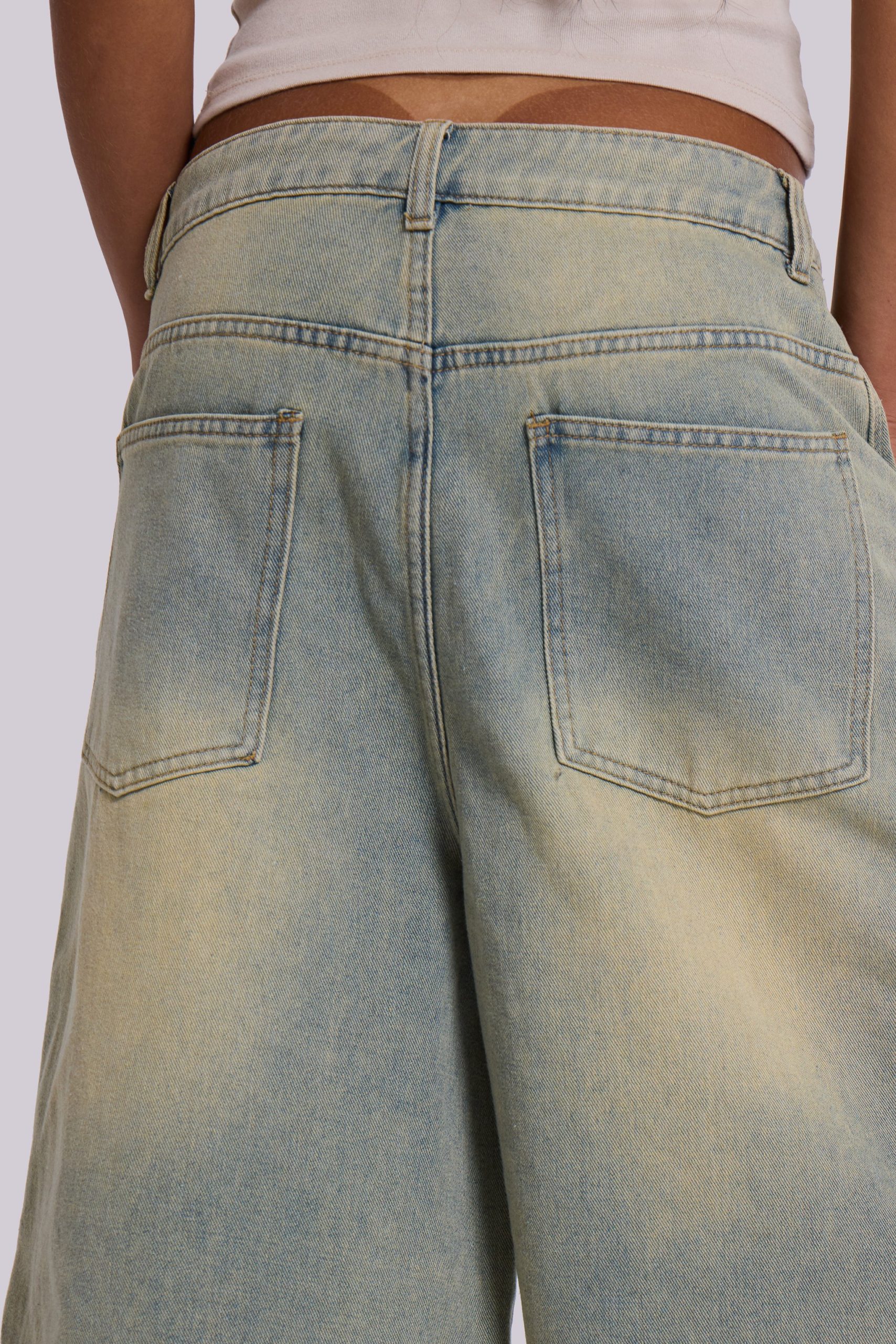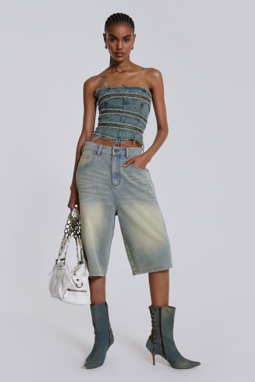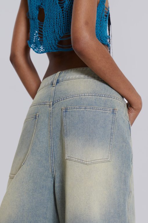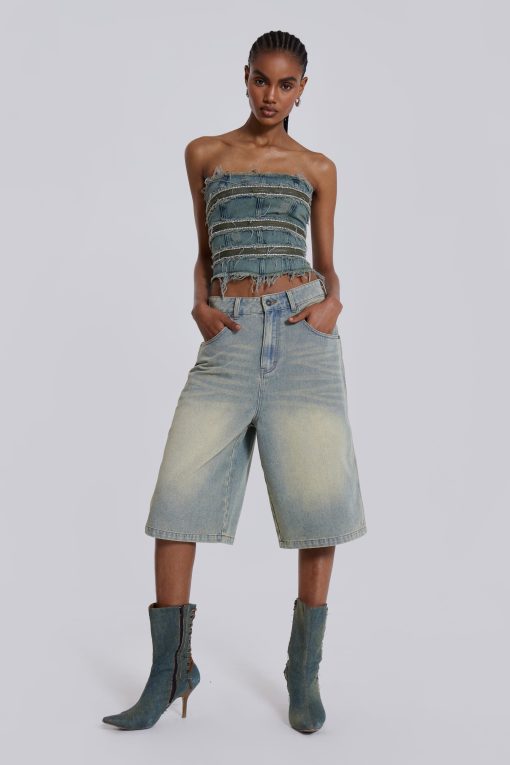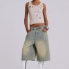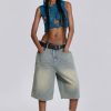 Our light wash jumbo jorts are cut from a light blue placement denim wash, these jean shorts feature three-quarter length legs and functional pockets, complete with a Colossus fit ensuring a comfortable fit.