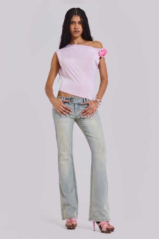 - Light wash stretch denim