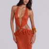 Jaded London Women’s Naida Beaded Crochet Maxi Dress | Orange