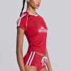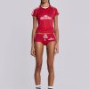 Jaded London | 2000Archives low-rise sporty mini shorts with drawcord waistband, side stripes and printed logos.
