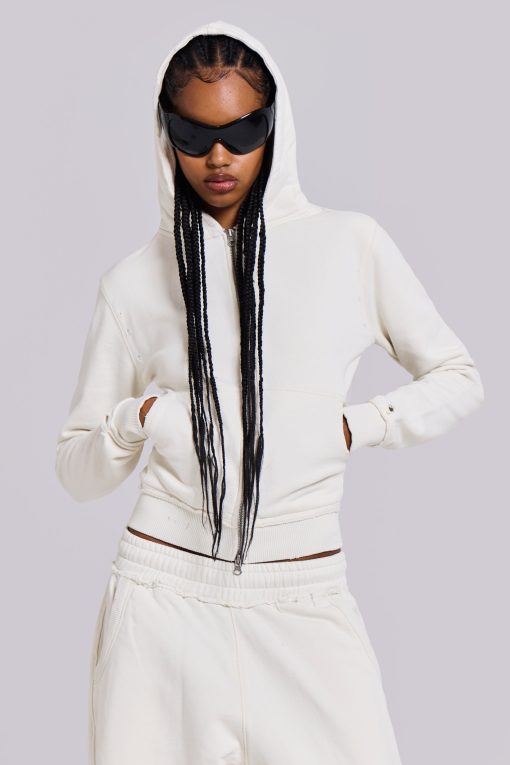 Jaded London Women’s Off White Mini Monster Hoodie | White