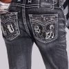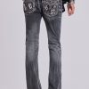 DescriptionRock Revival x Jaded London low-rise denim bootcut jeans in stretch washed black denim with branded back pocket details and metal hardware.