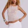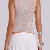 Sheer cream mesh vest top with placed embroidery and sequin floral artwork