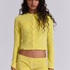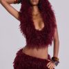 Description Asymmetric longline bandeau top with draped and knotted detail in printed mesh.