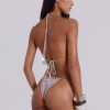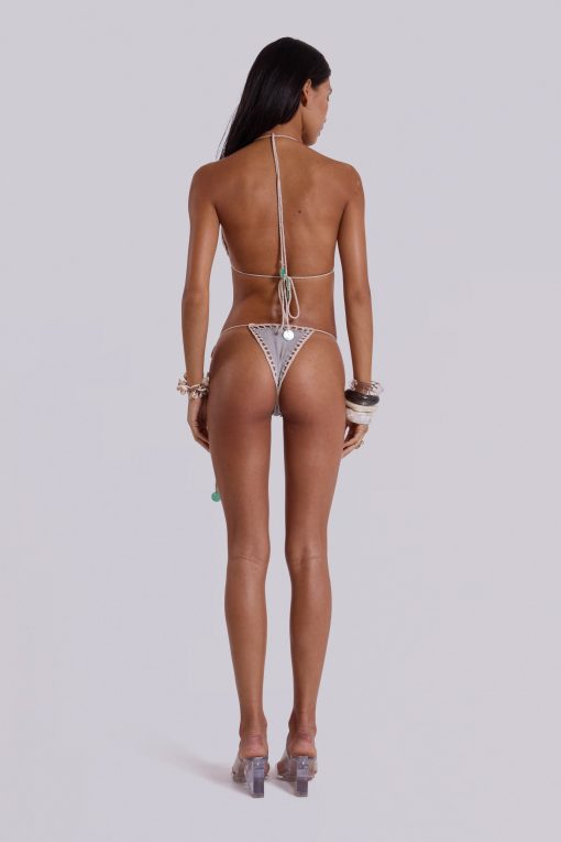 Please Note: This bikini is not water-resistant and is intended for lounging, sunbathing, or poolside. It is not suitable for prolonged exposure to water.