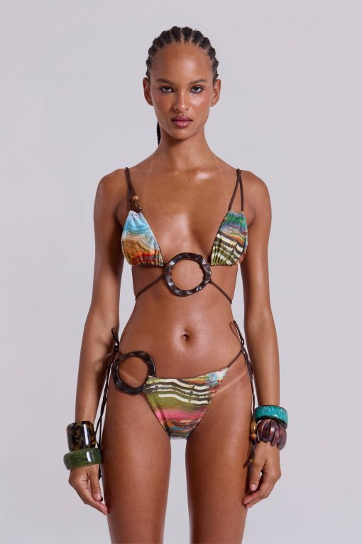 Fabric: 77% polyester, 23% elastane. Lining: 90% polyester, 10% elastane. Trims 1: 100% resin Trim 2: 100% wood