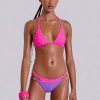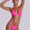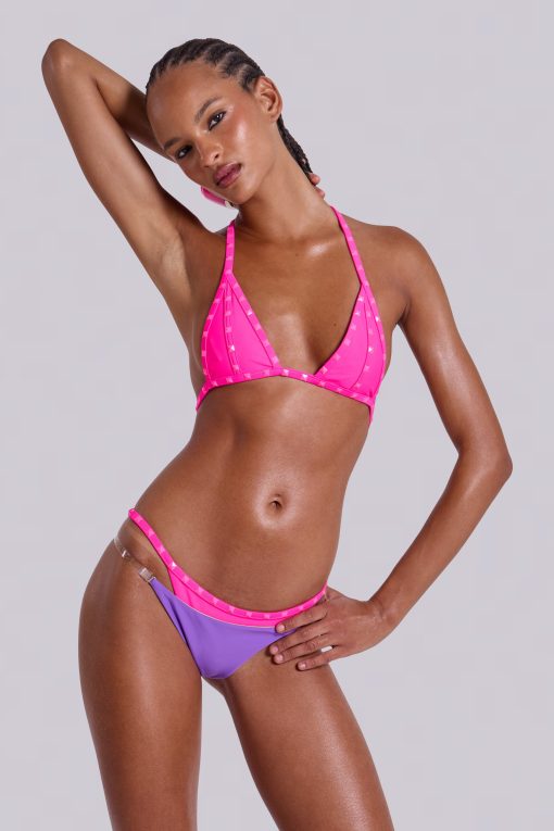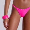 Neon pink low-rise bikini bottoms with neon pink stud detail