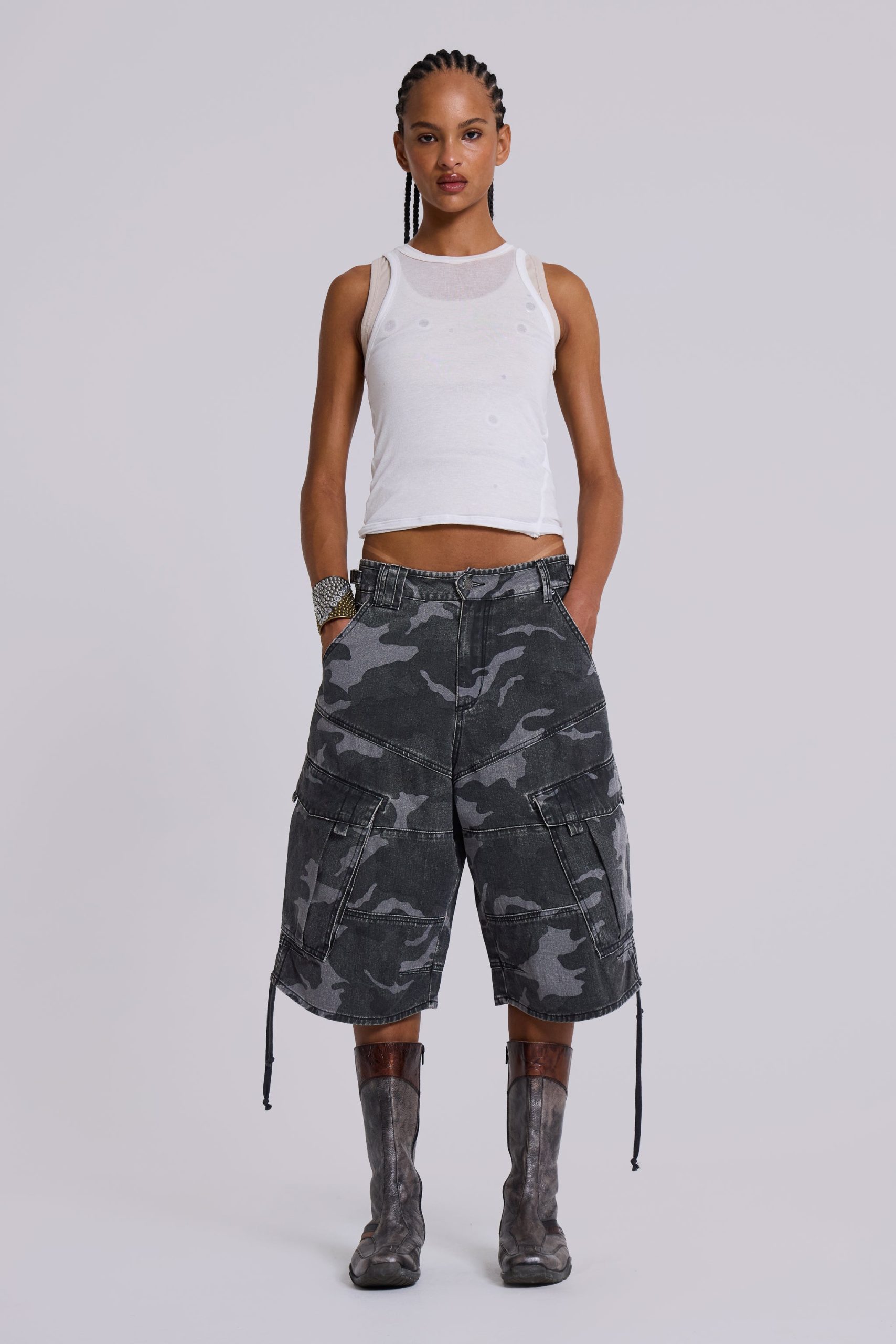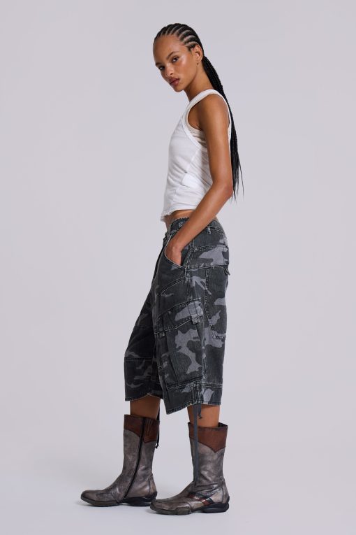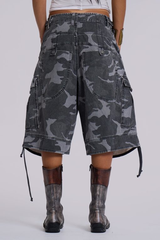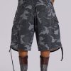 Jaded London Women’s Washed Black Cadet Camo Baggy Shorts | Camo