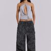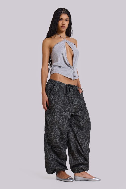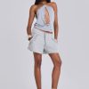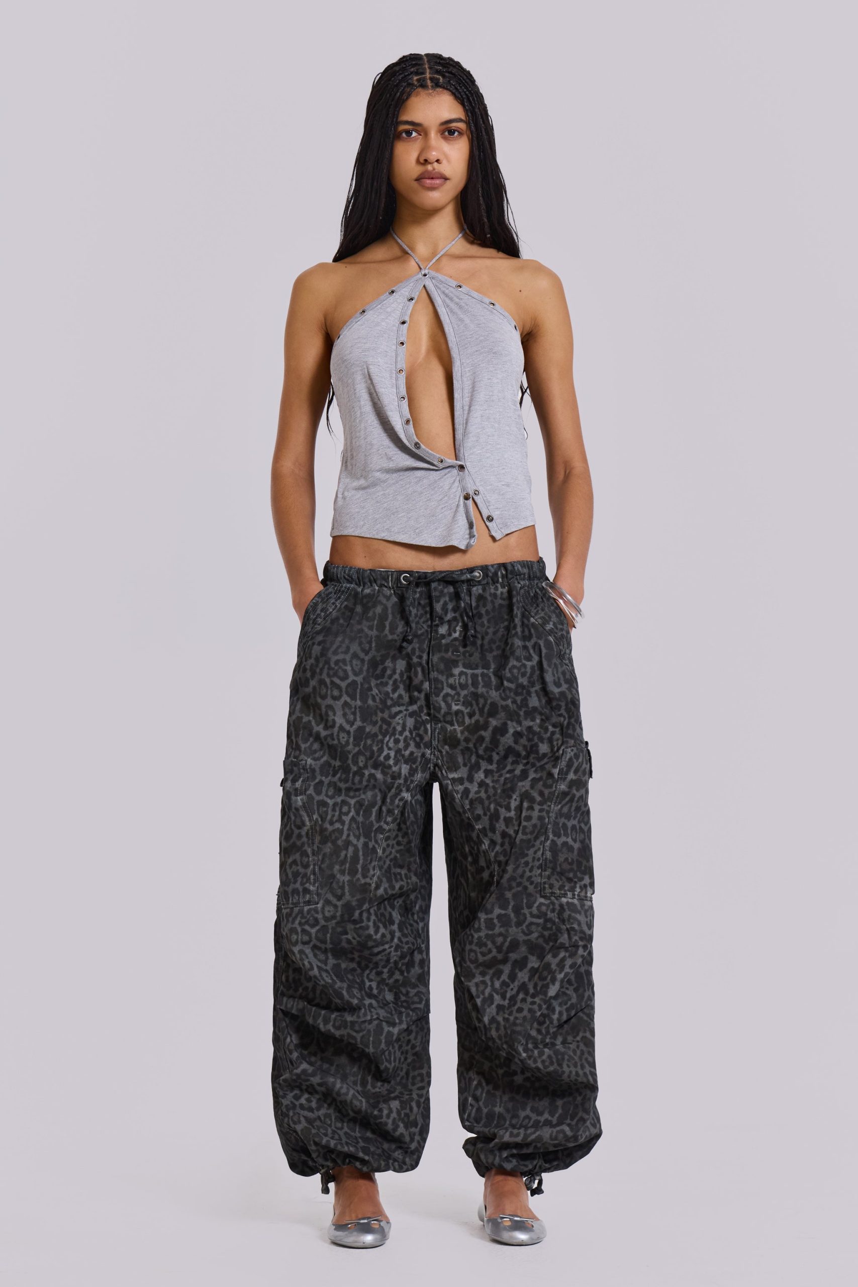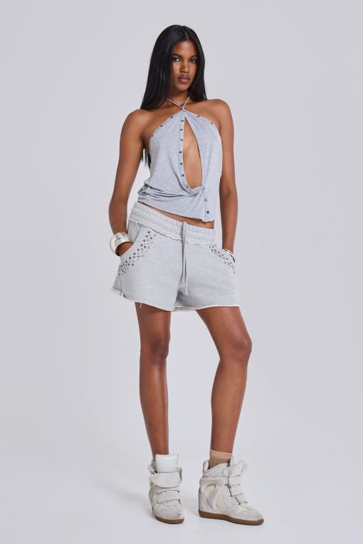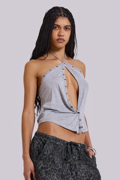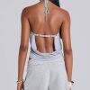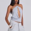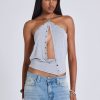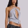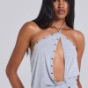Zeila Cut Out Drape Top. Sleeveless draped marl top with eyelet detail and a tie neck.